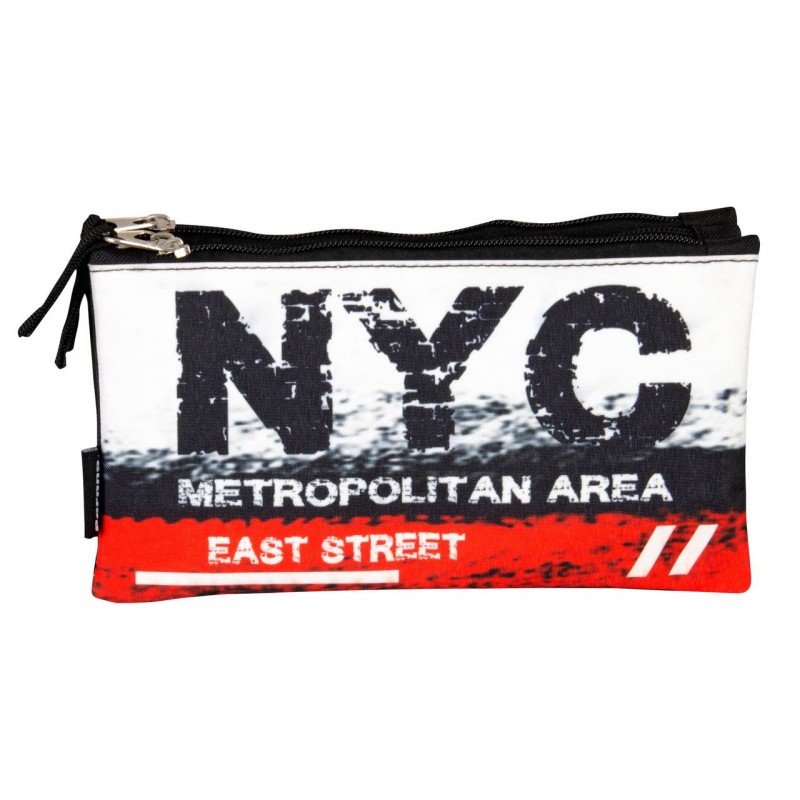 W zestawie: 1 potrójny czarny, biały i czerwony piórnik z motywem NYC, trzema przegródkami oddzielonymi zamkami błyskawicznymi, suwakiem i wewnętrzną podszewką.
