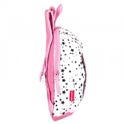 Zawiera: 1 biało-różowy plecak dla dzieci ze specjalnym wzorem z linii Doll, który zawiera wizerunek dziewczynki ze zwierzętami i czarnymi gwiazdami, główną kieszeń zapinaną na zamek błyskawiczny i ściągacz z materiału, zewnętrzną kieszeń boczną zapinaną na zamek błyskawiczny i ściągaczem z materiału , wyściełane uchwyty z możliwością regulacji rozmiaru oraz karta identyfikacyjna.